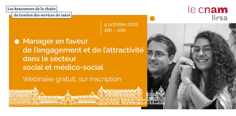 Pouvoir d'agir des usagers en Europe, en Amérique, en Afrique... Partager les savoirs pour une plus grande démocratie en santé11 décembre 2025Webinaire - WebconférenceLes Rencontres de la chaire de Gestion des services de santé du Cnam, le laboratoire Lirsa (EA4603), et la Revue des Sciences de Gestion s’associent pour organiser la 3e édition du colloque "Démocratie en santé et pouvoir d’agir des usagers". -